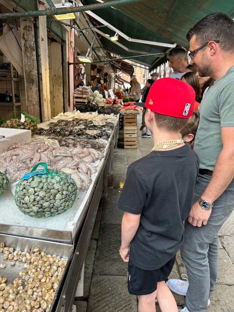 Determined to reset, we began with strong coffee and pastries, then wandered through the lively fish market near our apartment. Venice’s charm slowly worked its way in as we let ourselves get lost in the narrow streets.