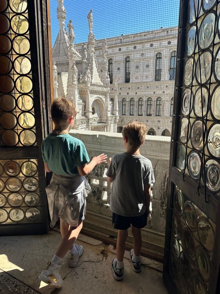 We began at Doge’s Palace, a hit for adults, a mixed bag for kids. The palace rooms and ornate murals didn’t hold their attention, but the prison cells and armor displays saved the day. There are also very few places to sit, so your legs just accept that.
