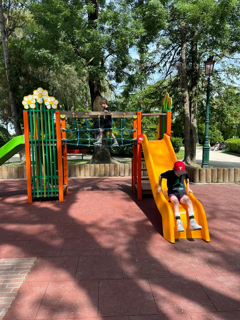 On our last day, the kids were definitely hitting their limit, so we headed somewhere with actual space to move: the Giardini della Biennale. After days of weaving through tight passageways, the gardens felt like a gift. From there, we went on a mission to find famous bridges, enjoy one last wander, and pick up Venetian masks as souvenirs.